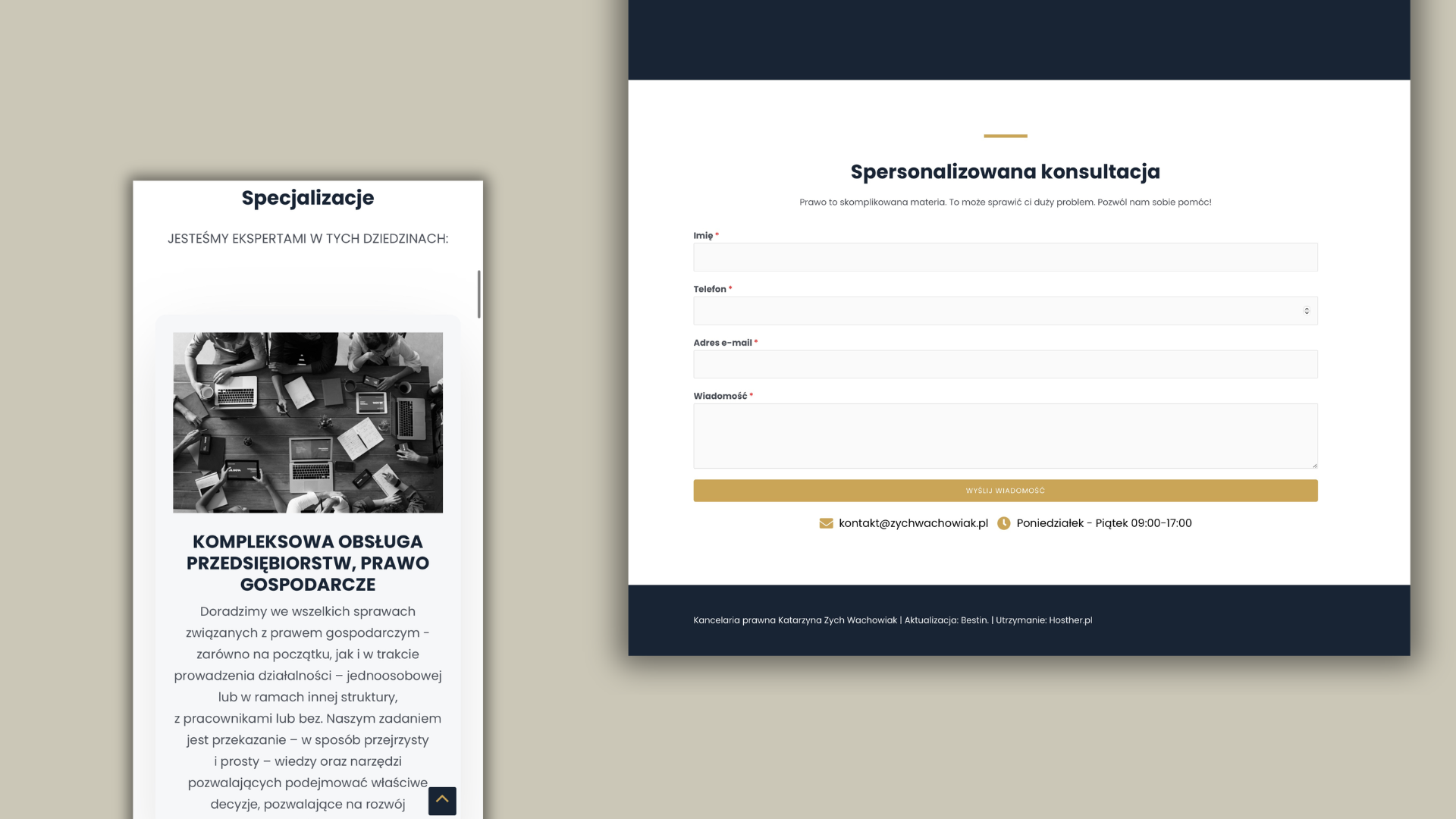 - pełny profesjonalizm wizualny, adekwatny do powagi i charakteru świadczonych usług prawnych.