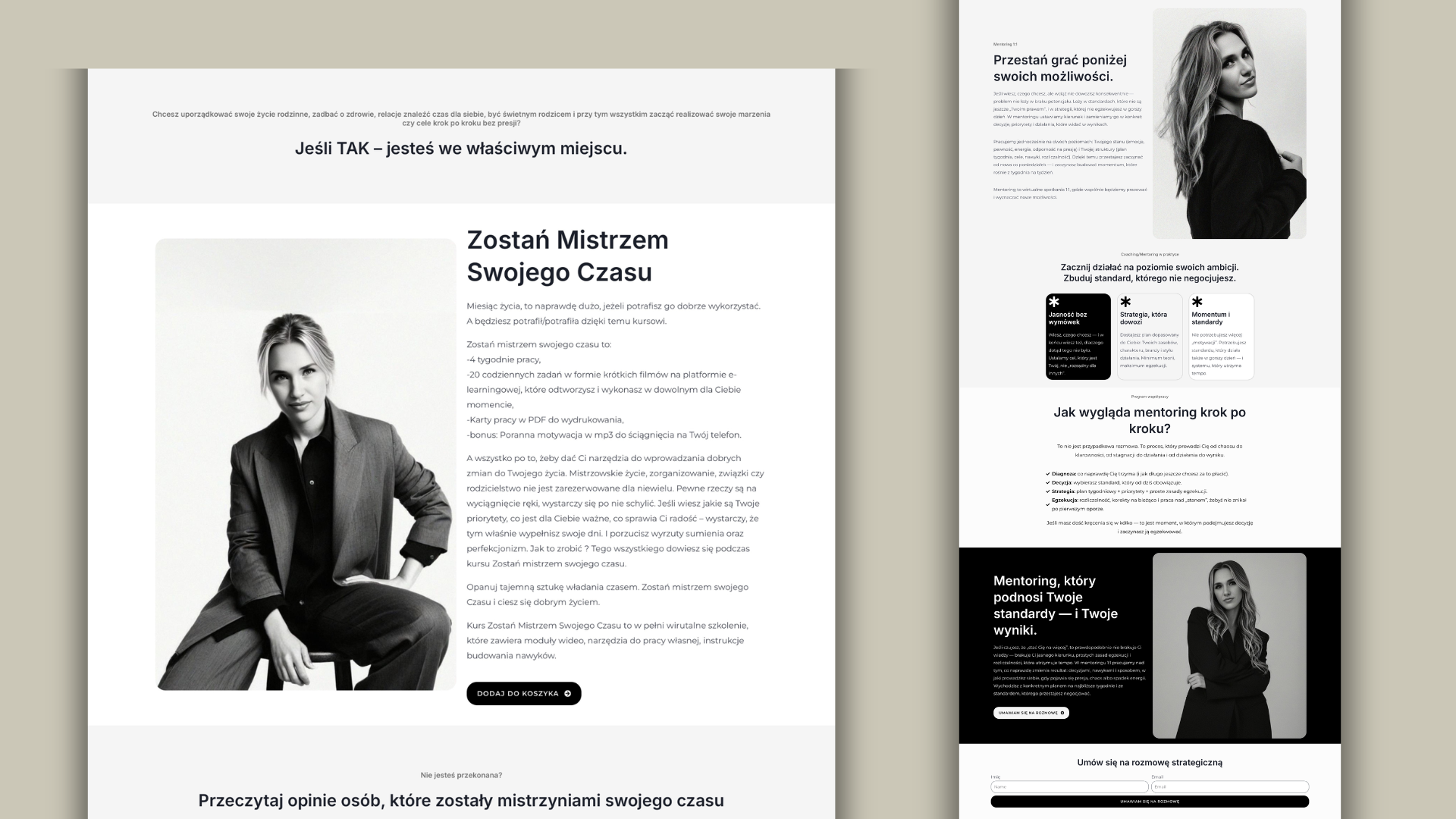 - kompleksowy ekosystem wiedzy, od sesji mentoringowych 1:1, przez kursy online, aż po autorskie książki i planery,